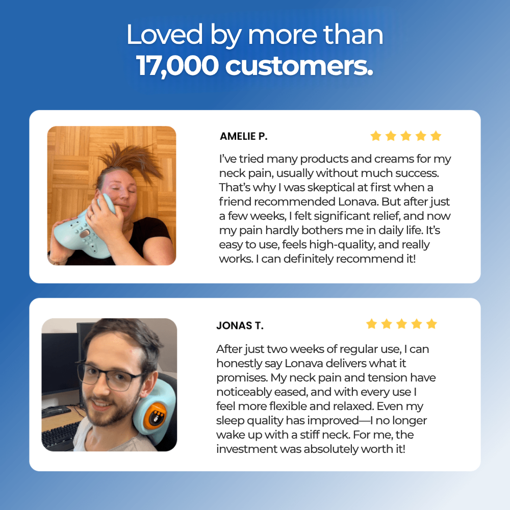 “After just two weeks of regular use, I can honestly say that Lonava delivers on its promise. My neck pain and tension have noticeably decreased, and with every session I feel more flexible and relaxed. Even my sleep quality has improved since I no longer wake up with a stiff neck. For me, the investment was absolutely worth it!”